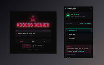 Commit Lock é uma extensão do Chrome projetada para ajudar os usuários a se manterem focados, bloqueando sites distrativos até que um commit seja realizado no GitHub. Através de uma conexão segura e de leitura com a conta do GitHub, os usuários podem personalizar uma lista de sites a serem bloqueados, como Twitter, Facebook e Instagram. A extensão atua em segundo plano, realizando checagens automáticas a cada 30 minutos para garantir que os sites permaneçam bloqueados até que um commit seja registrado.